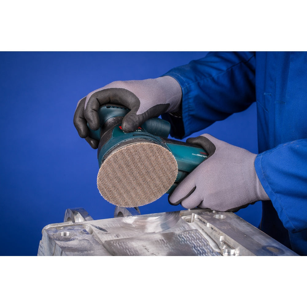 PFERD offers a range of high quality velcro-backed abrasive discs available in various industry required grit sizes. The KSS NET range features a net-fabric to which high quality Aluminium Oxide grains are attached to resulting in almost complete "dust-free" sanding. Suitable for universal grinding work from coarse to fine finishing, on a variety of materials including Wood, Metal, Aluminium, Paint, Primer, Varnishes and Lacquers as well as Carbon and Glass reinforced plastics.