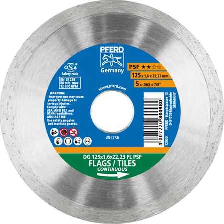 PFERD 125mm Diamond cut-off wheel with continuous rim for very fine cutting
