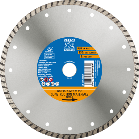 PFERD 230mm Diamond Cutting Blade -Continuous Rim( Turbo)