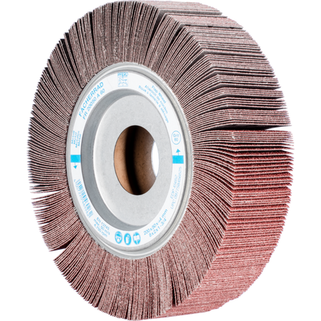 On unmounted flap wheels, the flaps made of coated abrasive are arranged radially around the tool axis in a fan-type structure. Their flexibility enables them to adapt perfectly to the contours of the workpiece. The abrasive grain is embedded in the sturdy, flexible cloth backing material by means of a resinoid bond.