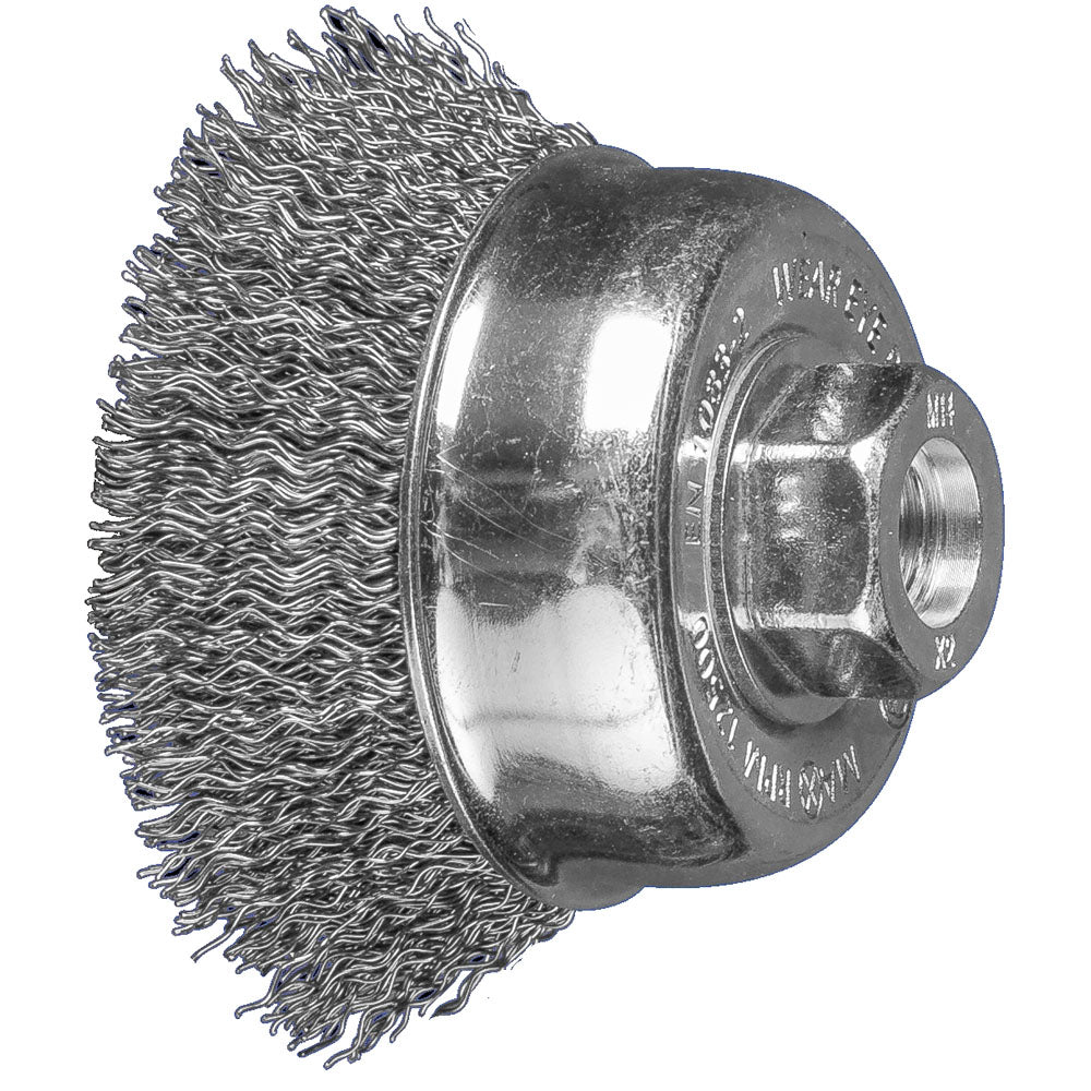 The crimped wire cup brush from PFERD is highly suitable for medium-duty brushing such as deburring, cleaning, removing the oxide layer as well as derusting on large surface.