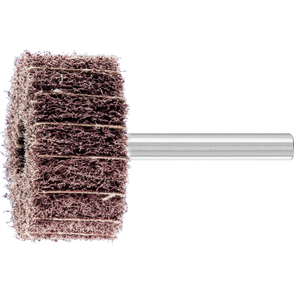 PFERD POLINOX mounted grinding wheels consist of non-woven polyamide abrasive, into which abrasive grain is integrated. The non-woven abrasive material is arranged in multiple radial flaps, with abrasive cloth interlayers. This flap structure facilitates improved stock removal and achieves a coarser surface finish. PFERD’s POLINOX mounted grinding wheel range consist of various sizes and grit sizes as well as grain types suitable for a broad range of materials and applications.