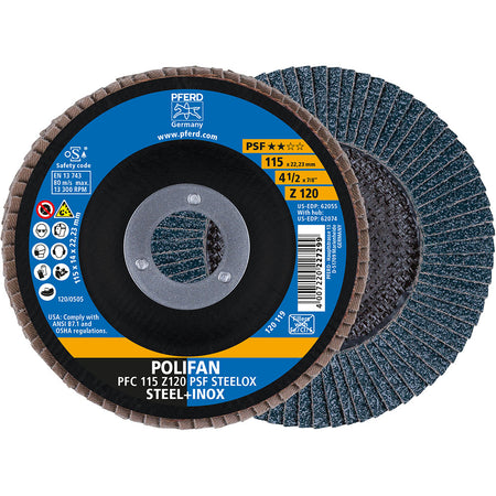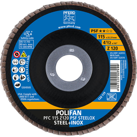 PFERD POLIFAN Flap Disc PSF STEELOX 115mm Grit 120