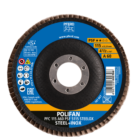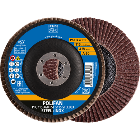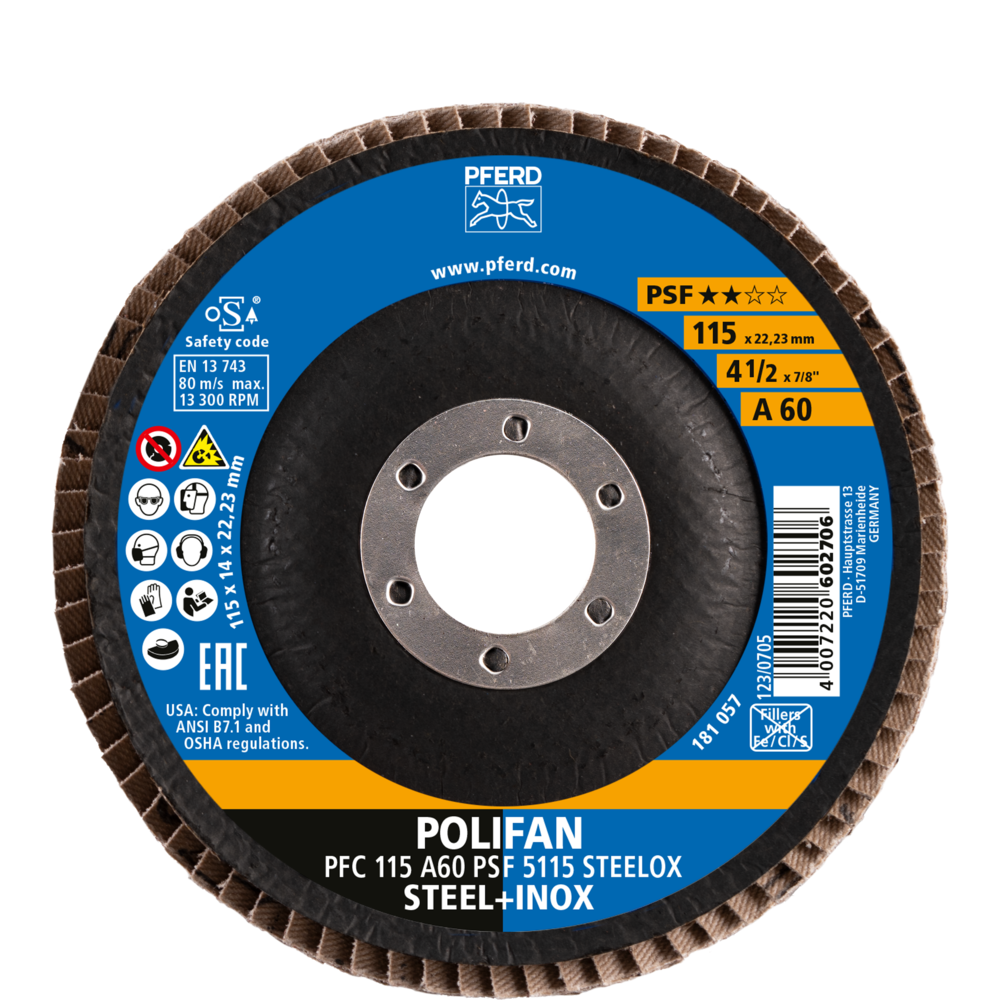 PFERD POLIFAN Flap Disc PSF STEELOX 115mm Grit 60