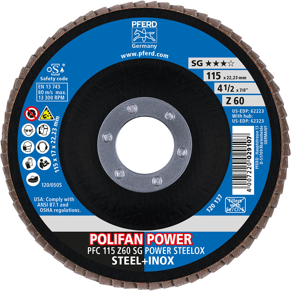 PFERD SG POWER POLIFAN Flap Disc 115mm Grit 60
