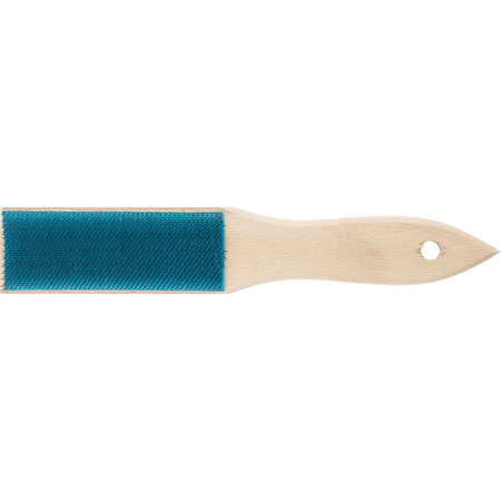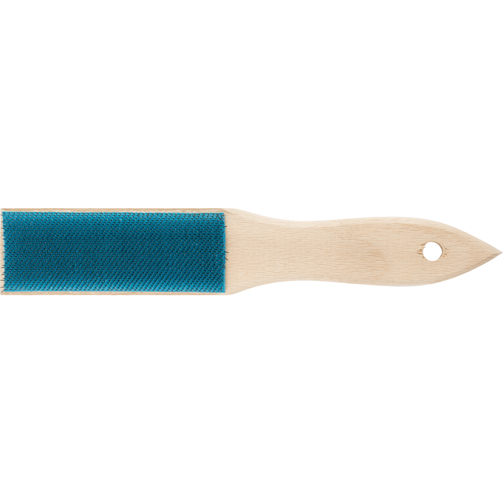 The file brush effortlessly cleans chips from a clogged file, improving stock removal with regular file cleaning. The brush has a robust wooden handle with wear-resistant steel wire filament. Suitable to use on steel.